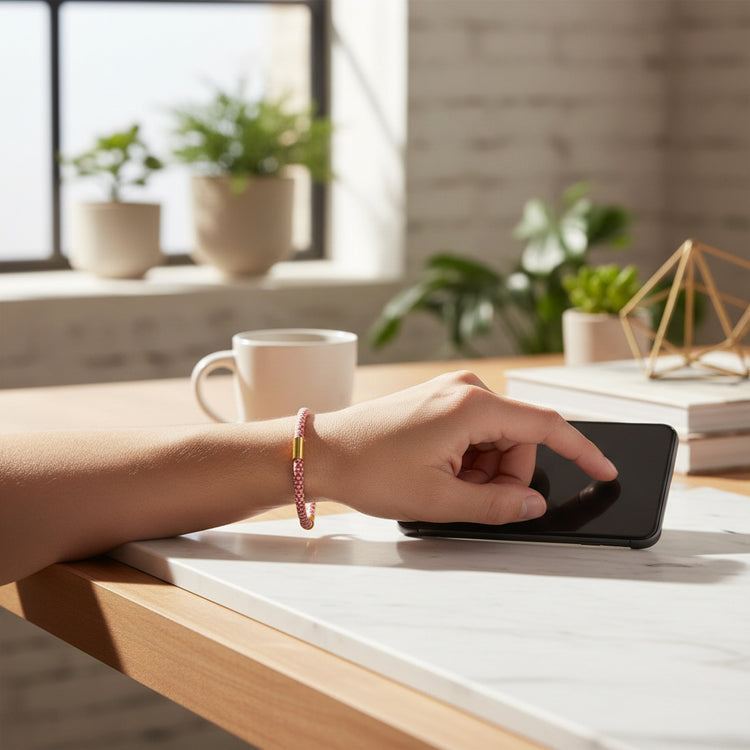Finished with your choice of gold or silver-plated end caps, the bracelet features a polished metallic detail that elevates its sporty, modern aesthetic. Wear it on its own for a clean, minimal statement or layer it with bangles, beaded bracelets, or your favorite watch to create a personalized wrist stack. Its sturdy construction makes it well suited for active days, casual wear, and everything in between.
