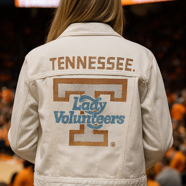 Show your team pride with confidence and standout style in the Tennessee Lady Vols T White Denim Licensed Game Day Jacket. Designed for fans who love elevated game day fashion, this jacket blends classic denim appeal with modern collegiate flair. Crafted from high-quality white denim, it offers a clean, fresh look that feels timeless while still making a bold statement.