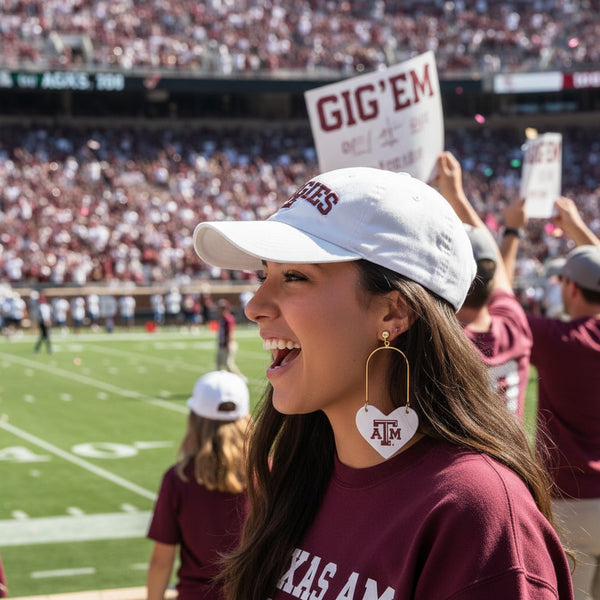 Perfect for game days, graduations, campus events or everyday expressions of Aggie spirit, the Heartthrob Earrings combine premium materials with standout craftsmanship. Their versatile, eye-catching design pairs beautifully with everything from casual tees to polished gameday dresses. A must-have addition to any Aggie’s accessory collection, these earrings bring together comfort, quality and spirited elegance—Gig ’em in style all year long.