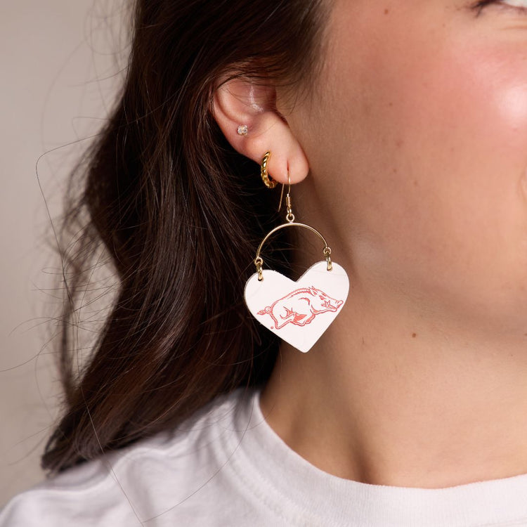 Customize your look with your choice of 14k gold-filled or rhodium-plated sterling silver ear wires, both hypoallergenic options that ensure irritation-free, all-day wear—from kickoff at the stadium to post-game festivities. Their versatile design pairs effortlessly with game day outfits, casual everyday looks or more polished ensembles, allowing you to express your Arkansas pride in a stylish and elevated way.