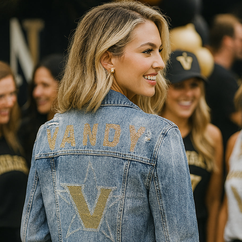 Show your Vanderbilt pride in standout style with the Vandy Star V Denim Game Day Jacket, a bold piece designed for fans who appreciate both fashion and tradition. Crafted from durable denim, this jacket offers a classic silhouette that works effortlessly for game days, campus events, and everyday wear. Its versatile design makes it easy to layer while maintaining a polished, confident look.